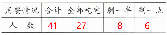 2. 为了促进学生“光盘行动”,某天少先队大队委展开了同学们对食堂午餐菜品情况的调查,结果记录如下。