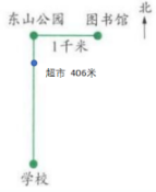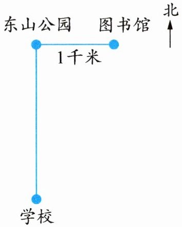 3. (1) 如图,东山公园离图书馆 1 千米,离学校大约(