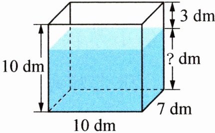 4. 如右图,长方体玻璃容器中存放了一些水。从图中,你能知道水深是多少分米吗?
