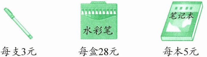 (2) 先买$1$盒水彩笔,剩下的钱可以买多少本笔记本?还剩几元?