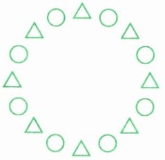 (2) 像这样一共摆 10 个○,那么一共要摆( )个△;像这样一共摆 20 个△,那么一共要摆( )个○。