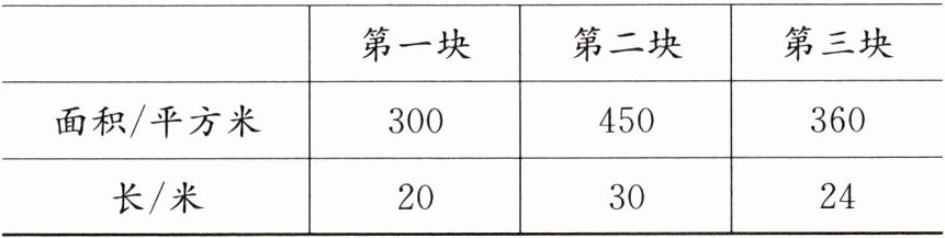 5. 三块长方形菜地,每块菜地的长和面积如下表。