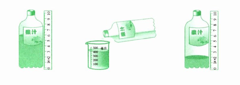 4. 小明用下面的方法量瓶里剩下的果汁大约是(