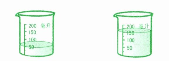 你能利用右边的两个空杯把左边杯里的 100 毫升水平均分成 2 份吗?