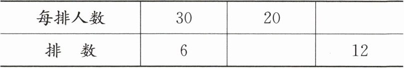 2. 四年级同学排队做操,如果每排30人,要排成6排。如果每排20人,要排成多少排?如果要排成12排,每排有多少人?(先填写下表,再列式解答)