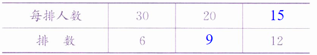 ,30×6÷20=9(排) 30×6÷12=15(人)