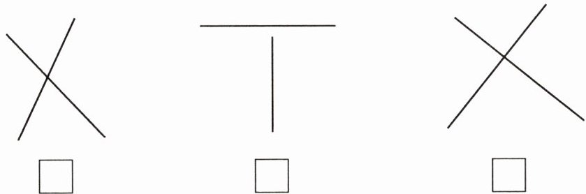 1. 下面哪几组直线互相垂直?互相垂直的在$□$里画“√”,不垂直的画“×”。