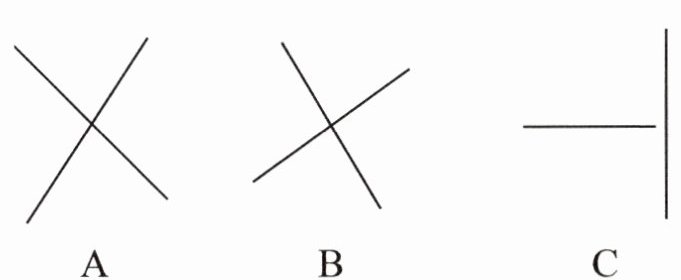 )条线与线段 AB 相互垂直。① 1 ② 2 ③ 3