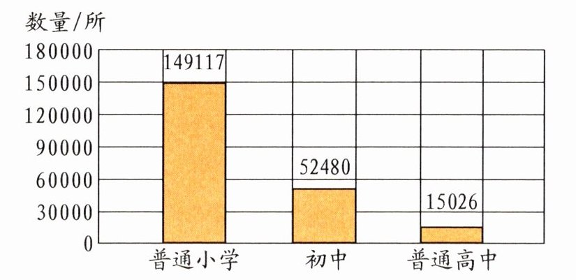 2. 下面是 $ 2022 $ 年全国普通小学、初中、普通高中学校数量统计图。先把图中的数改写成用“万”作单位的数,再保留一位小数。
