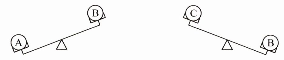 7*.根据图意,A比B重,B比C重。可见A最重,是4.9克,C最轻,是2.8克,B居中,是3.6克。