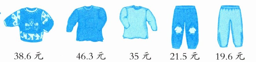 (2) 小明用 100 元买一套衣服,营业员找回 39.9 元。你知道小明买的是哪件上衣和哪条裤子吗?