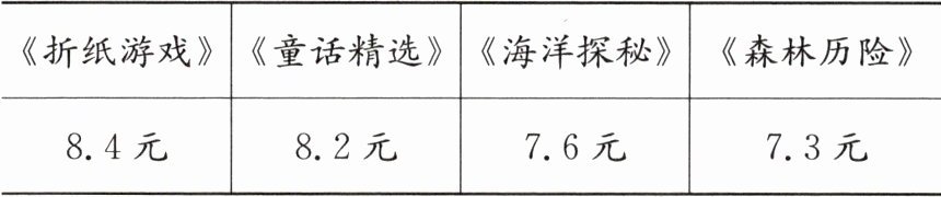 6. 书店里的 4 种书婷婷都很喜欢,这 4 种书的价格如下表。