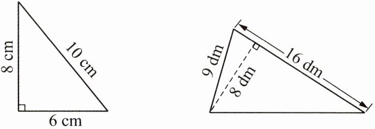 2. 6×8÷2=24(cm²) 16×8÷2=64(dm²)