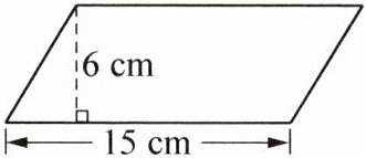 3. 下面的平行四边形,底是 15 厘米,高是 6 厘米。在这个平行四边形内画一个尽可能大的三角形,三角形的面积是多少平方厘米?