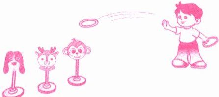 2. 如图,小明做套圈游戏,套中小狗得5分,套中小鹿得4分,套中小猴得3分。小明套中两次,可能得多少分?可能有多少种不同的得分?