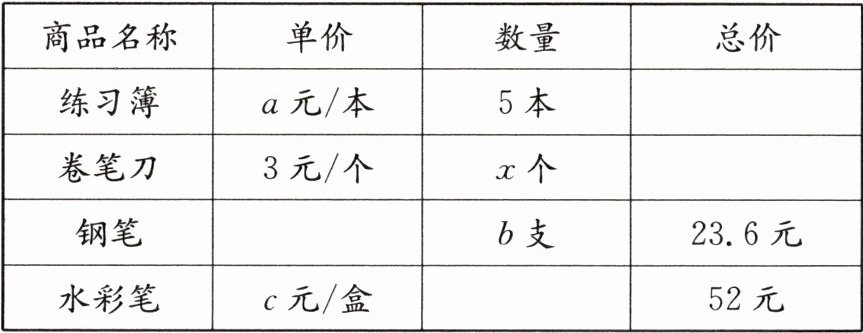 3. 5a元,3x元,(23.6÷b)元/支,(52÷c)盒