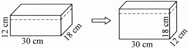 8. 一个密封的长方体玻璃罐,长 30 厘米,宽 18 厘米,高 12 厘米。如下面左图平放时里面水深 9 厘米,如下面右图侧放时水深多少厘米?