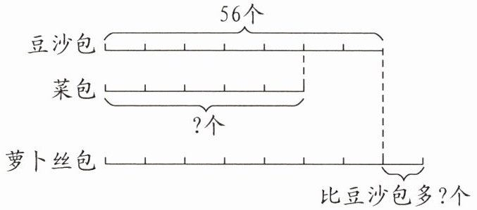 5.菜包有56×$\frac{5}{7}$=40(个),萝卜丝包比豆沙包多56×$\frac{1}{7}$=8(个)。