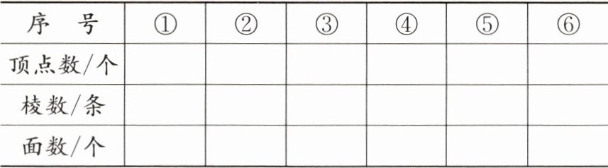 数出每个多面体的顶点数、棱数和面数,并填表。