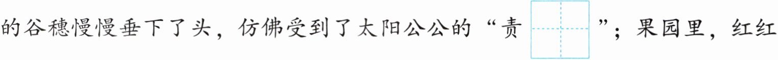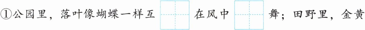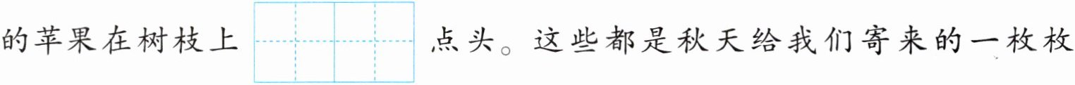 ①公园里,落叶像蝴蝶一样互 在风中 舞;田野里,金黄的谷穗慢慢垂下了头,仿佛受到了太阳公公的“责 ”;果园里,红红的苹果在树枝上 点头。这些都是秋天给我们寄来的一枚枚邮 。
