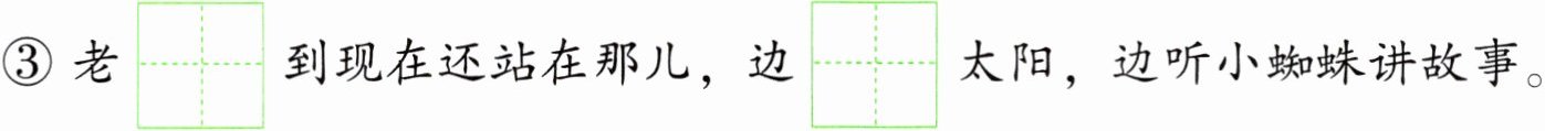 太阳,边听小蜘蛛讲故事。(1) 读拼音,在田字格里写字词。