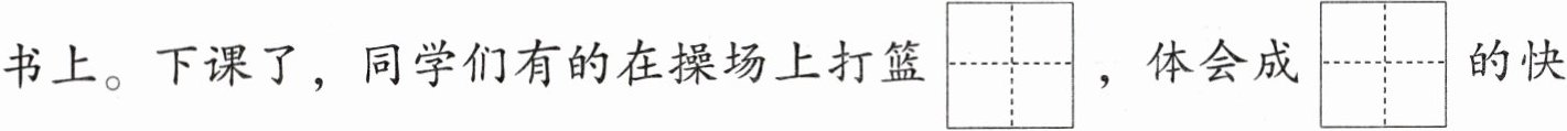 上课时,同学们在( )的教室里认真听讲,跟着老师圈画重点词句,借助[例 列]子学习方法,把笔记[详 祥]细地标注在书上。下课了,同学们有的在操场上打篮$\begin{array}{|c|}\hline qiú \\\hline