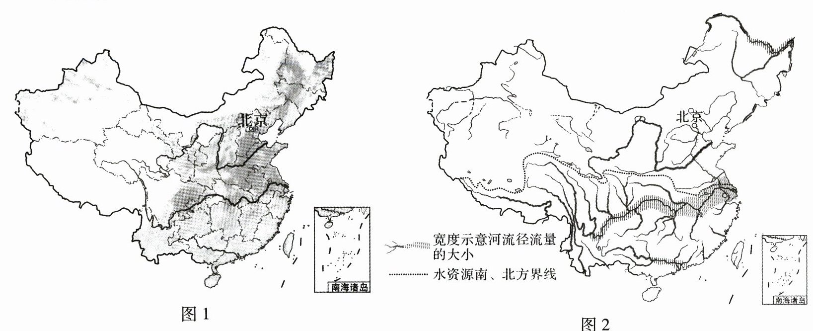 “人的命脉在田,田的命脉在水,水的命脉在土,土的命脉在树。”如果种树的只管种树、治水的只管治水、护田的单纯护田,很容易顾此失彼,最终造成生态的系统性破坏。下面图1为中国主要耕地的分布图,图2为中国主要河流径流量分布示意图。