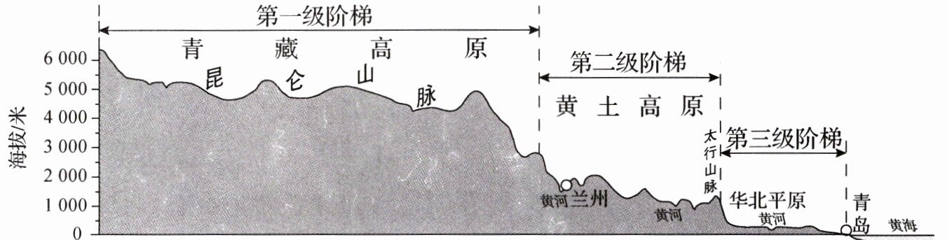 米以上,体现了我国地势具有西高东低,呈现三级阶梯