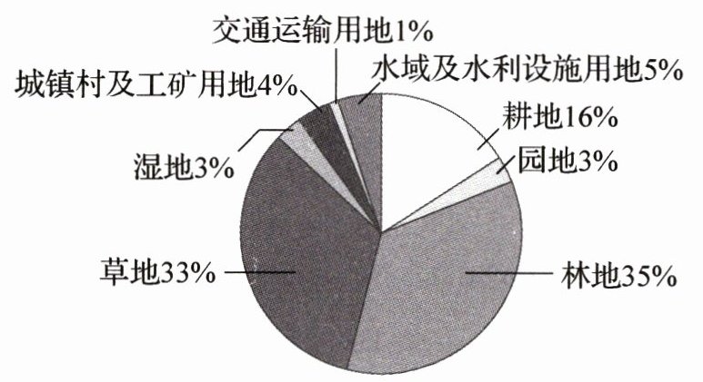 土地是人类的衣食之源和生活、生产的空间,是宝贵的自然资源。下图示意我国可利用的土地资源类型。读图,完成第 3 题。