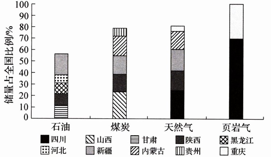 近年来,我国不断推进矿业领域绿色发展,矿产资源的勘探开发取得重要进展。下图为中国主要能源矿产储量地区分布图(截至2021年底)。读图,完成12~14题。