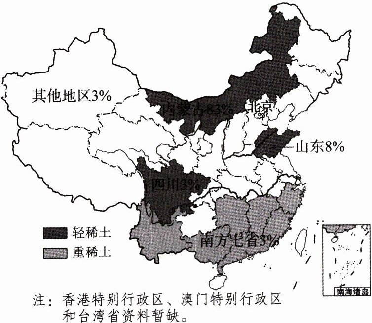 (1)概括我国稀土资源分布的主要特点。
