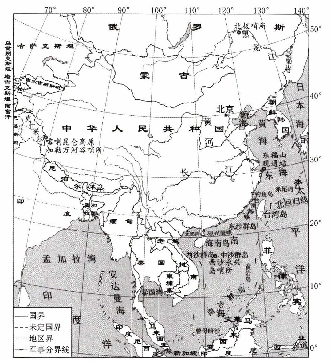 (填国家)的国界处,是我国最北端的哨所,驻守在这里的官兵冬季要同风雪搏斗,同严寒抗争。从地理位置看,该地气温低的主要原因是纬度较高