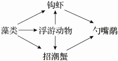 C 解析:该食物网有4条食物链。钩虾和浮游动物之间既有捕食关系,又有竞争关系。在食物链和食物网中,箭头代表能量的流动方向。题图增加非生物部分和分解者等才能构成完整的生态系统。