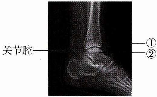 4. (河北中考)右下图为某人左脚的踝关节射线透视图像,①②表示踝关节内的结构。下列说法错误的是(
