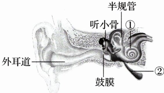 9. 每年3月3日是“国际爱耳日”。2021年,据世界卫生组织统计,全世界约有11亿年轻人(12~35岁)因个人音频设备音量过大而面临不可逆的听力损失。请据图分析回答下列问题。