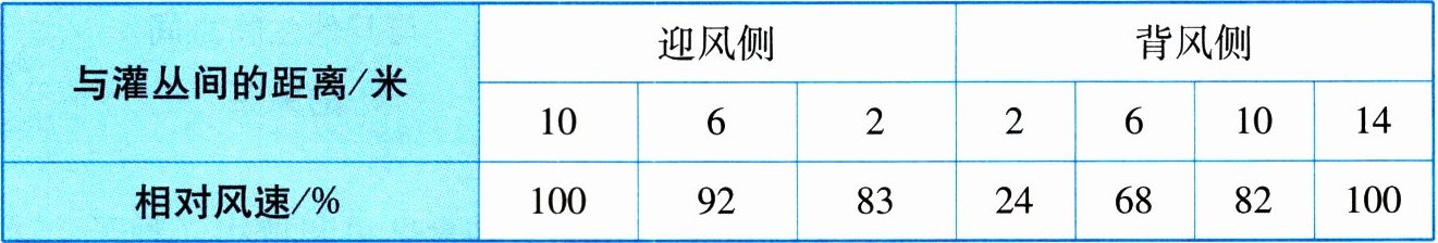 (2)研究人员对柽柳防风固沙功能进行野外观测,结果如下表。