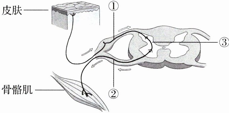 C 解析:骨骼肌属于效应器。反射活动需要经过完整的反射弧来实现,若反射弧中任何环节在结构或功能上受损,反射就不能完成。故②传出神经受损,有感觉,但不能发生缩手的反射。③是神经中枢。“望梅止渴”是条件反射,反射中枢在大脑皮层,题图所示反射弧类型是非条件反射,不能表示“望梅止渴”。