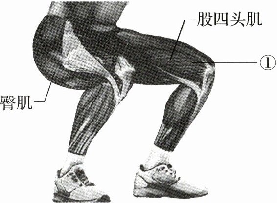 ,牵动骨完成运动。(3)在深蹲起过程中,有的同学会通过戴护膝来增加膝关节牢固性,护膝模拟关节中