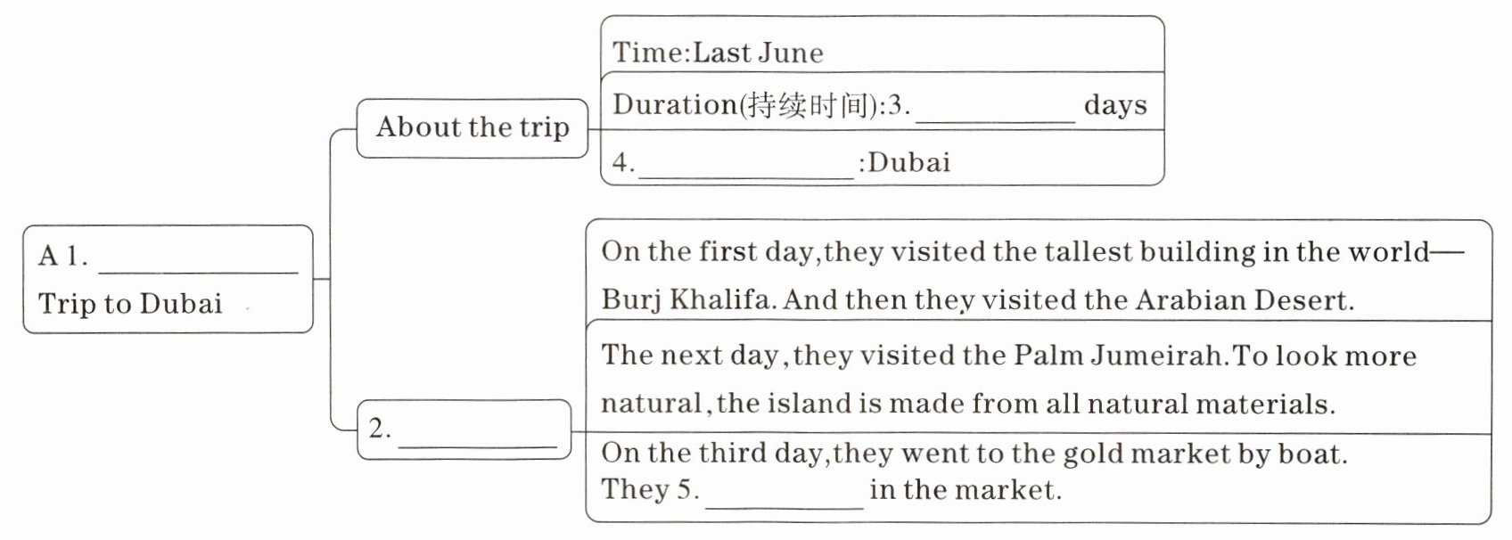 根据短文内容,完成导图中所缺的信息。(每空一词)
