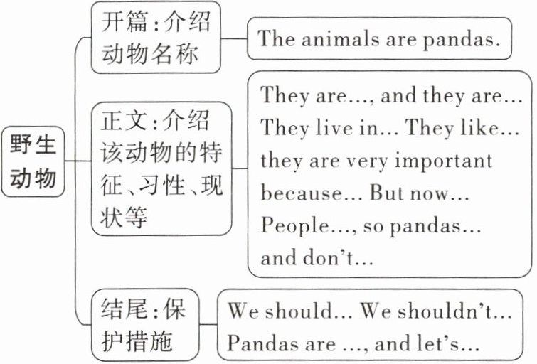 The animals are pandas. They are black and white, and they are very cute. They live in forests and zoos in China. They like eating bamboo, leaves, fruits and so on. For many Chinese people, they are very important because they are a symbol of China. But now pandas are in danger. People cut down too many trees, so pandas don't have enough space to live and don't have enough food to eat.