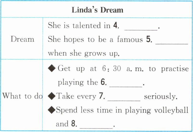 Ⅱ. 信息转换 听下面的短文,写出下面表格中所缺的单词,每空仅填一词,短文读两遍