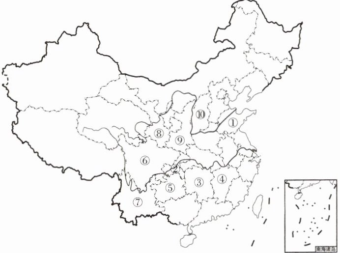 (2025.马鞍山)(跨学科语文)地理源于生活,它反映了大自然的千姿百态。许多文人墨客将生活感受以诗词、成语和对联等形式展现给世人,这些诗词、成语和对联等逐渐成为中华传统文化的瑰宝。读中国行政区划简图,完成7~8题。