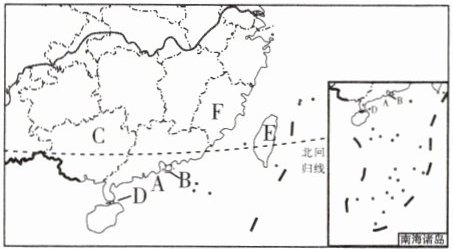 海峡。(4)与E隔海相望的省级行政区:F省的简