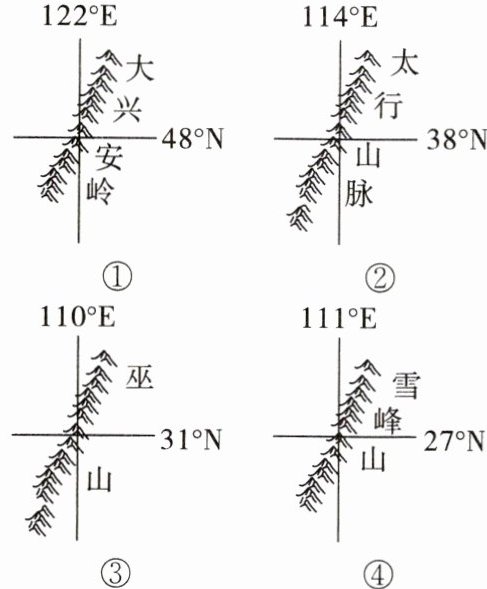 3. 关于图中山脉两侧地形区的叙述正确的是(