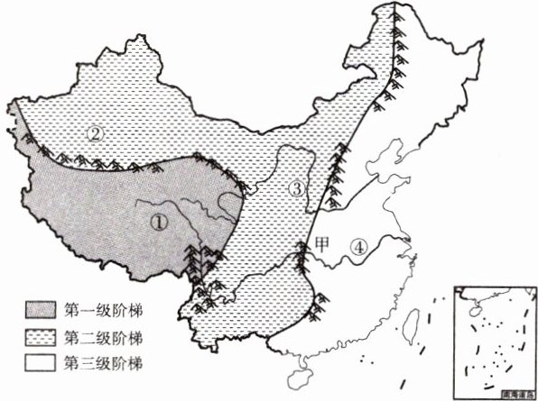 (2025·淮北)中国自然环境多姿多彩,多样的地形、起伏的地势,构成一幅山河壮丽的画卷。读中国地势阶梯分布示意图并结合所学知识,完成 7~8 题。