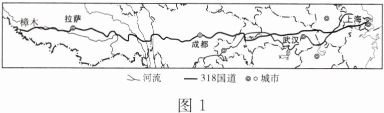 材料一 近年来,自驾旅游悄然兴起。东起上海、西至西藏的 318 国道备受旅游爱好者的青睐。318 国道绵延 5476 千米,被誉为中国最美景观大道(图 1)。