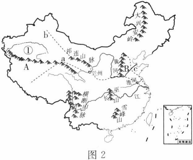 盆地是我国纬度最高的盆地。(4)若沿线路 c 旅游,则沿途经过山脉 B