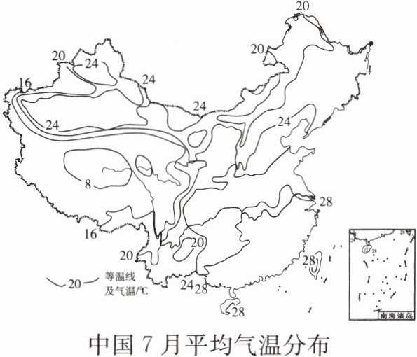 月平均气温分别代表冬季和夏季气温。2. 在中国1月平均气温分布图上,0℃等温线大致经过