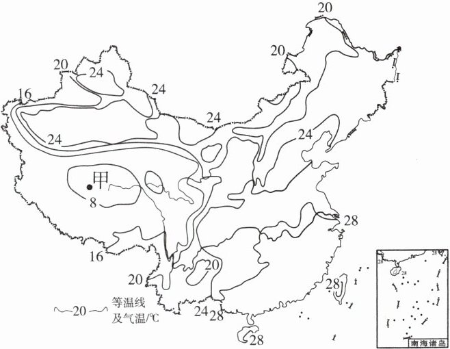 (3)自南向北逐渐降低 南部地区纬度较低,获得的太阳辐射多,气温高;越往北纬度越高,获得的太阳辐射越少,气温越低。