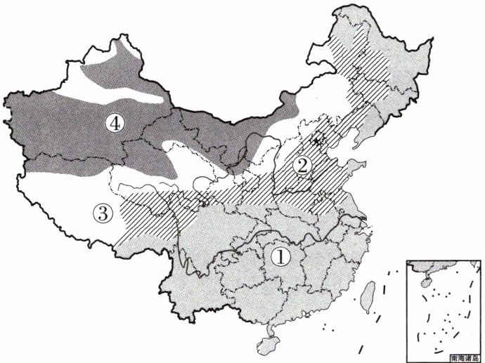 10. 与①②干湿地区之间的界线大致吻合的是(